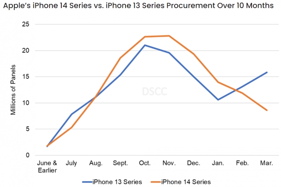 애플 아이폰14 OLED 출하량 35% 급감